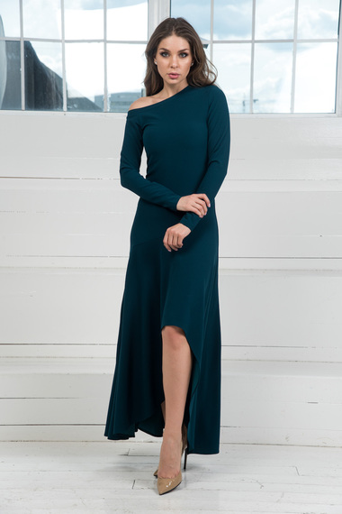Детали одежды: асимметричный подол, вырез горловины "лодочка"